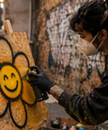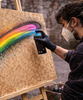 Street art de verdade. Você explora técnicas inspiradas no graffiti e na arte urbana em uma superfície preparada, com todos os materiais, aprendendo a ocupar o espaço, trabalhar cor e composição, construir uma peça autoral.